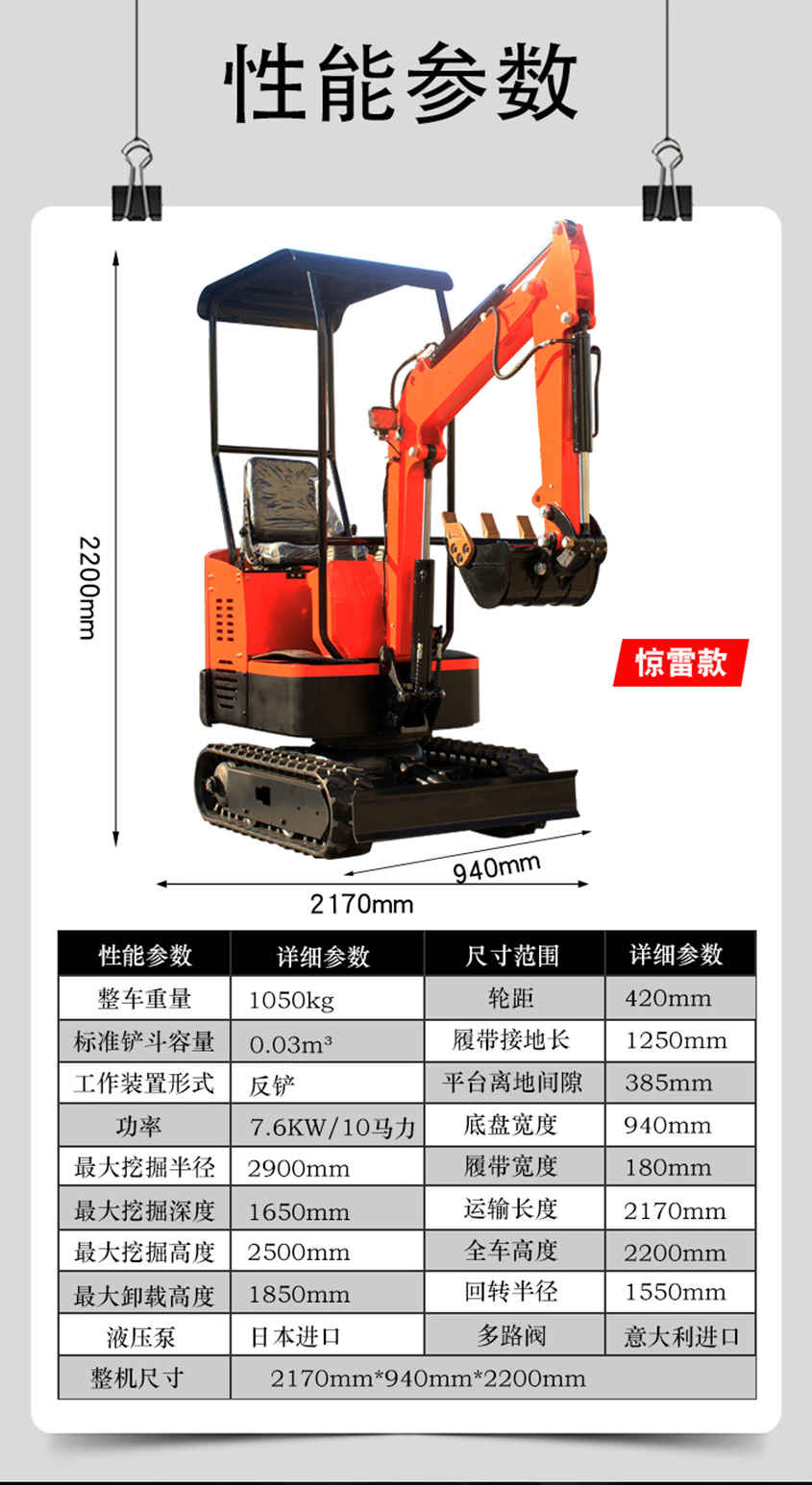 整車重量:950KG標準鏟斗容量:0.025m3額定功率:8.6kw