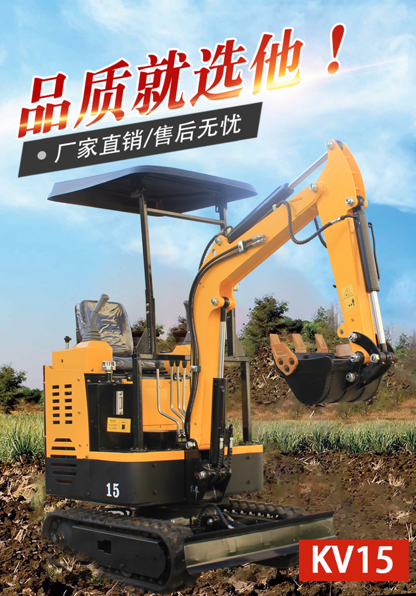 KV15小型挖掘機產品配置高,性能優越,油耗低,作業范圍廣。適合蔬菜大棚的土質疏松,市政部門的園林綠化,果園苗圃栽樹挖坑,混凝土路面破碎以及砂石料攪拌等空間狹小的施工作業